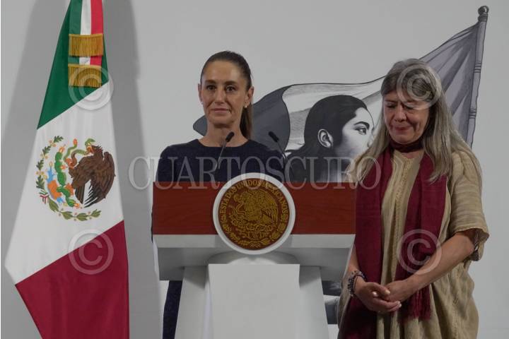CIUDAD DE MÉXICO, 10ENERO2025.- Rocio Mejía Flores, titular de FINABIEN, durante la mañanera del pueblo en Palacio Nacional. FOTO: PRESIDENCIA/CUARTOSCURO.COM