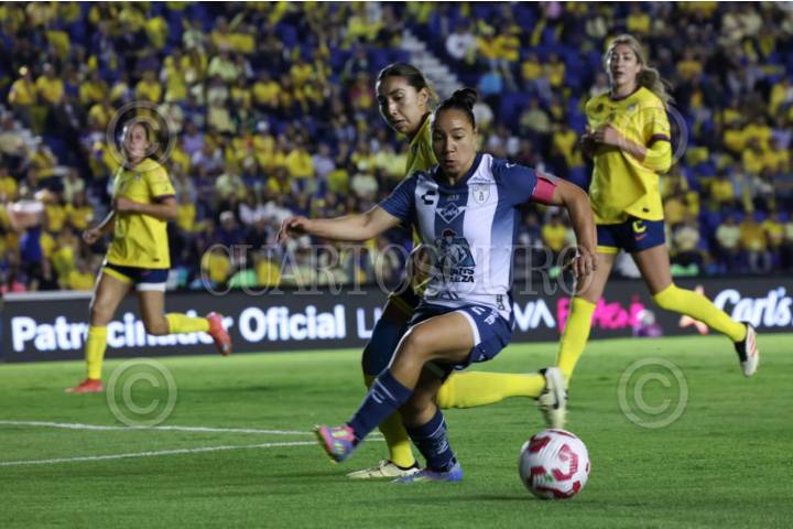 CIUDAD DE MÉXICO, 12MAYO2025.- Charlyn Corral, delantera del Pachuca, conduce el balón ante la zaga del América, en el partido de vuelta de la final de la Liga Femenil MX. Las Tuzas lograron la hazaña a pesar de perder 2-0, ya que el encuentro de ida lograron una victoria de 3-0, con esto el marcador global les favoreció 3-2. Las hidalguense levantaron el título ante una afición americanista que abarrotó el Estadio Ciudad de los Deportes. FOTO: GRACIELA LÓPEZ/CUARTOSCURO.COM
