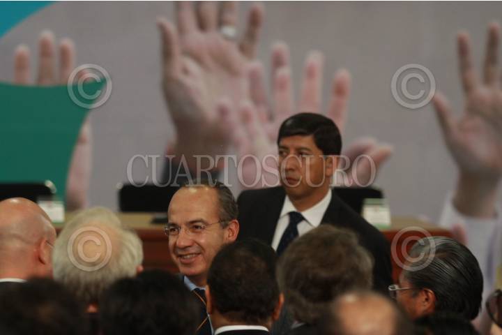 MÉXICO, D.F., 02DICIEMBRE2009.- Felipe Calderon Hinojosa Presidente de México asu salida del salon Adolfo Lopez Mateos de la residencia oficial de los Pinos, donde el mandatario mexicano realizó la clausura de la mesa redonda "La democracia de una encrucijada : el reto del financiamiento ilicito de la Politica" FOTO: SÁSHENKA GUTIÉRREZ/ CUARTOSCURO.COM