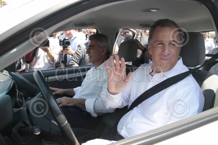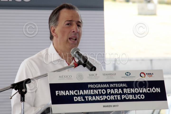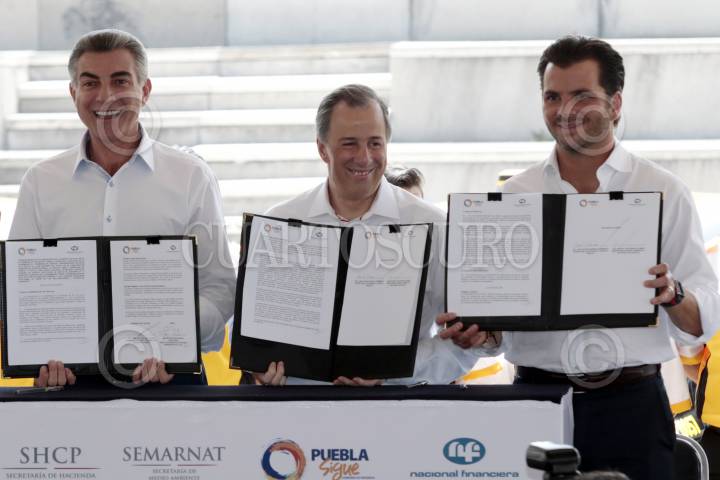 PUEBLA, PUEBLA; 08MARZO2017.- El gobernador de Puebla; Antonio Gali Fayad, acompañado por José Antonio Meade, secretario de Hacienda y Credito Público y Rafael Pacchiano Alamán, secretario del Medio Ambiente y Recursos Naturales, realizaron firma de convenio para el financiamiento de unidades del Transporte Público para la entidad poblana. FOTO: HILDA RÍOS /CUARTOSCURO.COM