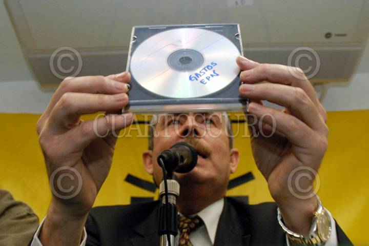 MEXICO, D.F. 02AGOSTO2005.- El presidente nacional del PRD Leonel Cota muestra un disco compacto con documentos que, según el, demuestra que el ahora gobernador electo del Estado de México, Enrique Peña Nieto rebasó los limites de campaña. FOTO: Miguel Dimayuga/CUARTOSCURO.COM