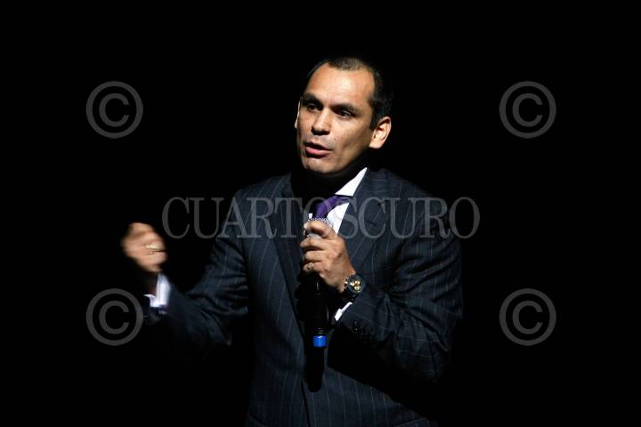 SAN ANDRES CHOLULA, PUEBLA, El boxeador mexicano, Ricardo "Finito" López, ofreció una conferencia en el teatro del Complejo Cultural Universitario de la BUAP ante cientos de personas que escucharon atentos las experiencias de vida del campeón mundial, en las cuales destacó tres ejes fundamentales que lo rigen para el éxito, Disciplina, Esfuerzo y Responsabilidad. FOTO: FRANCISCO GUASCO/CUARTOSCURO.COM