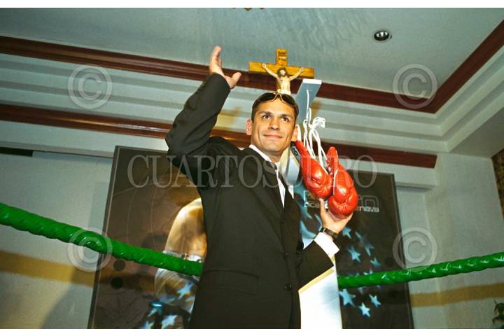 En compañia de reconocidos personajes del deporte mexicano como lo son, el boxeador Julio César Chávez, y la velosista Ana Gabriela Guevara, anunció el fin de su carrera de boxeador, después de 27 años de carrera, en el cual fur nominado "campeón mundial". FOTO: Eunice Adorno/CUARTOSCURO.COM