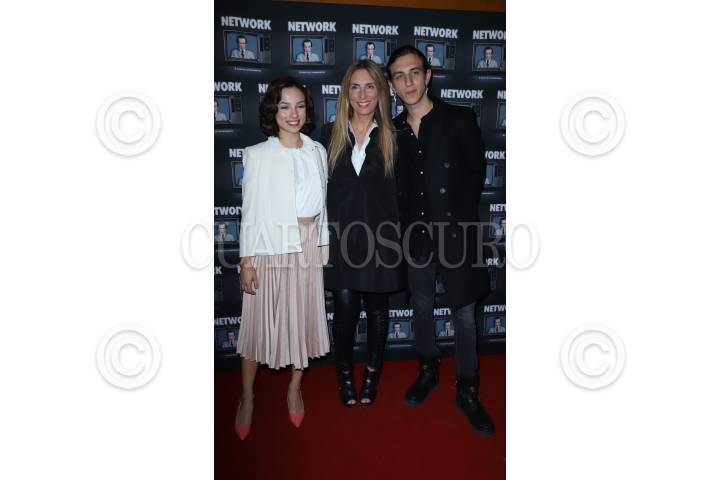 Fiona Palomo, Carina Ricco y Luca Palomo durante la alfombra roja por el estreno de la obra de teatro Network, que se presenta en el Teatro de los Insurgentes.