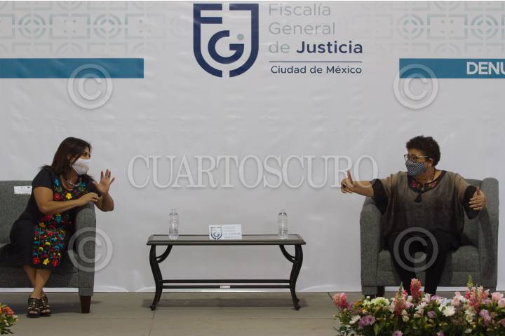 Ernestina Godoy, fiscal General de Justicia de la Ciudad de México, durante una Audiencia Pública en la que atendió a dos ciudadanos, en la explanada de la alcaldía Iztapalapa