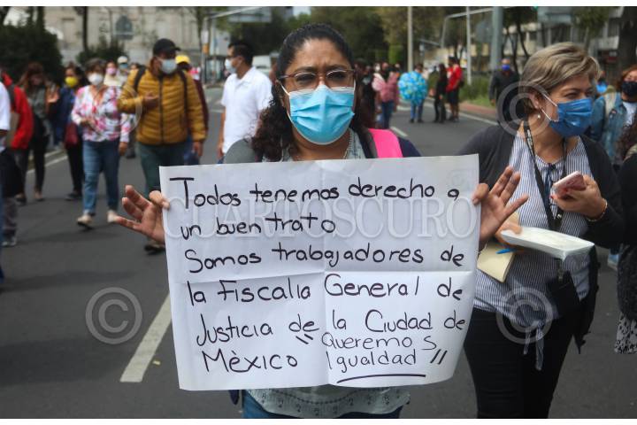 Trabajadores de la Fiscalía General de Justicia de la Ciudad de México marcharon para exigirun incremento salarial, demandan malas condiciones de trabajo