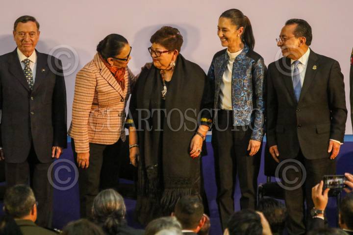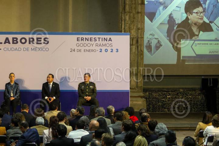 La jefa del Gobierno, Claudia Sheinbaum Pardo y la secretaria de Seguridad, Rosa Icela Rodríguez, acompañaron a la Fiscal Ernestina Godoy en su informe de labores.