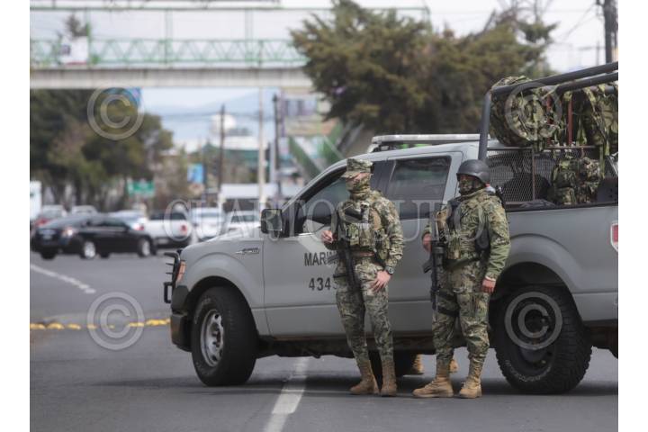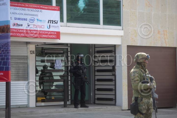 Elementos de la FGR y Marina realizaron el cateo de un edificio en Metepec.