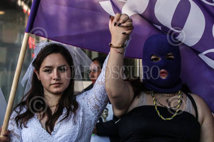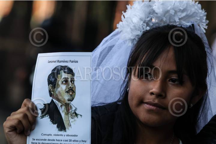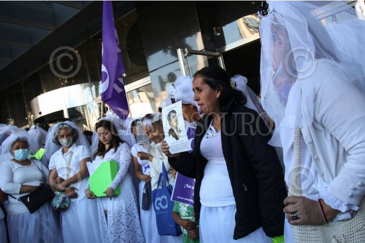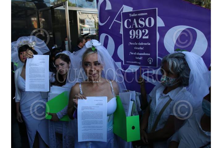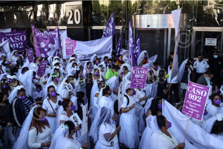 Mujeres autonombradas como Organización de colectivas de mujeres se manifestaron vestidas de novia frente a la Fiscalía Especializada del combate contra la corrupción de la fiscalía general por las mujeres del caso 992 de violencia vicaria donde solicitaron una audiencia con María de la Luz Mijangos Borja para la entrega física de hechos por corrupción de Leonel Ramírez Farías.