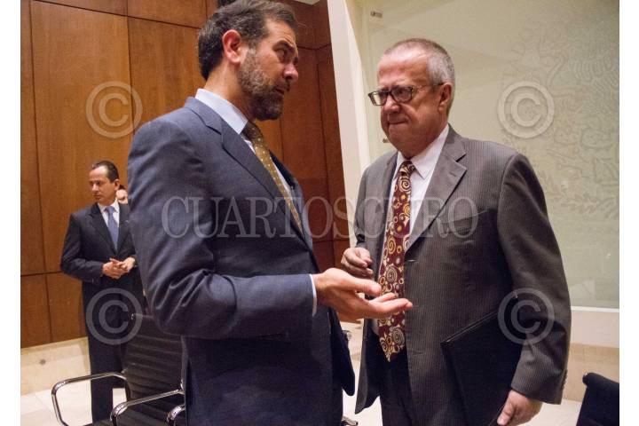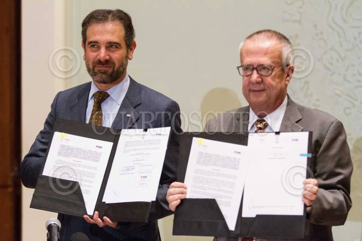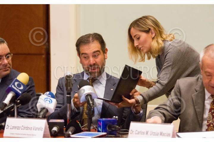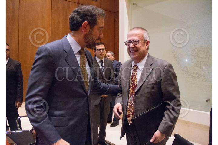 CIUDAD DE MÉXICO, 06MARZO2019.- Lorenzo Cordova, consejero Presidente del INE y Carlos Urzúa, secretario de Hacienda firmaron un convenio esta mañana en Palacio Nacional. FOTO: VICTORIA VALTIERRA /CUARTOSCURO.COM