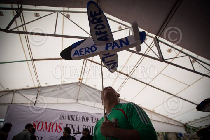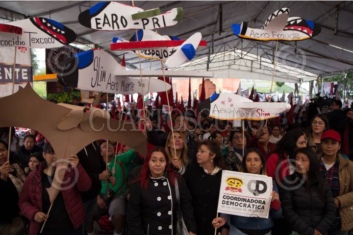 IUDAD DE MÉXICO, 21OCTUBRE2018.- Diversas organizaciones sociales se reunieron en la Plaza Tlaxcoaque para realizar la Asamblea Popular "Somos una sola voz" donde activistas y líderes de opinión como José Flores de Pueblos en Contra del Aeropuerto de Texcoco y el caricaturista político Rafael Barajas "Fisgón" compartieron a los asistentes las razones por las cuales no es viable la construcción del Nuevo Aeropuerto Internacional de México (NAIM) en Texcoco entre las que destacan la terrible calidad del suelo, el ecocidio que afecta la cuenca hidrológica del país, las afectaciones a los Pueblos Originarios y el ser un monumento a la corrupción. FOTO: ILSE HUESCA / CUARTOSCURO.COM