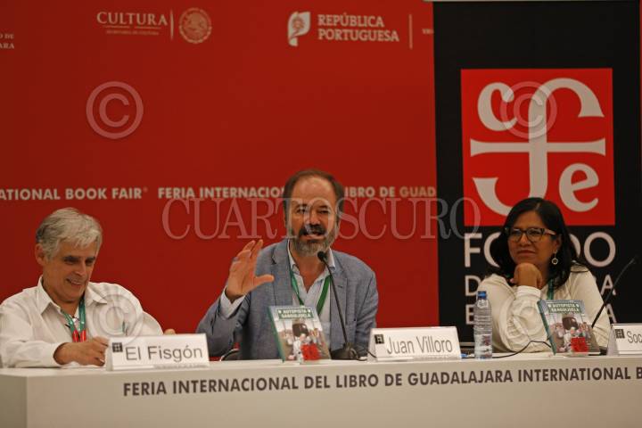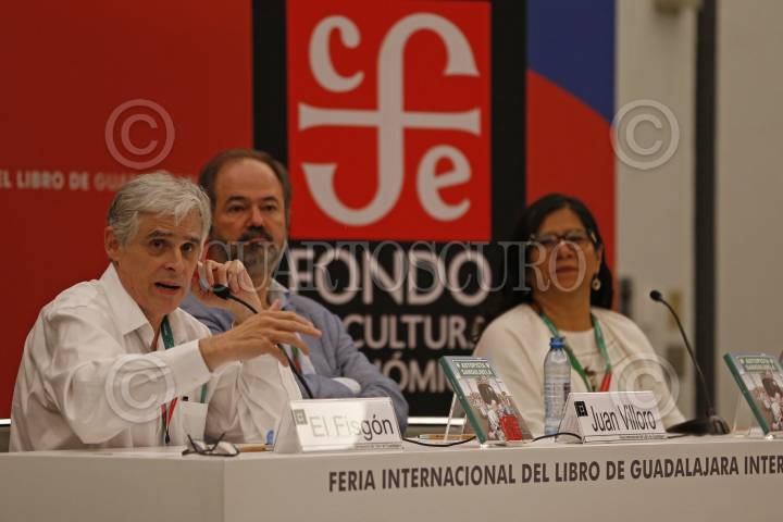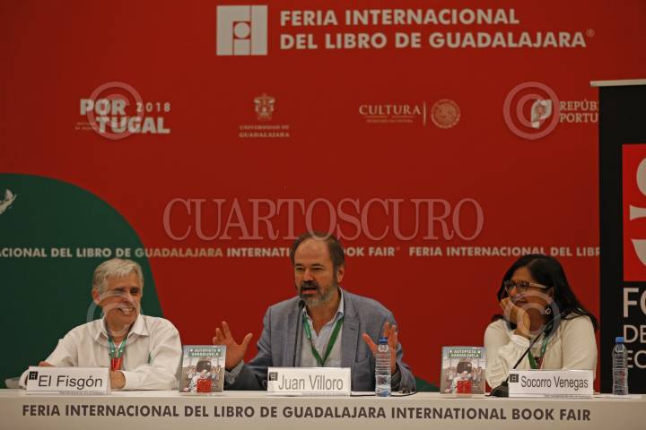 GUADALAJARA, JALISCO, 27NOVIEMBRE2018.-El escritor mexicano Juan Villoro, presento su mas reciente libro “Autopista Sanguijuela” el cual fue ilustrado por Rafael Barajas “El Fisgón”, esto en el marco de la edición 32 de la Feria Internacional del Libro de Guadalajara (FIL), en la que Portugal es el invitado de honor y en evento que se llevo a cabo en la Expo. FOTO: FERNANDO CARRANZA GARCIA /CUARTOSCURO.COM