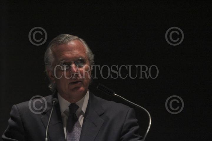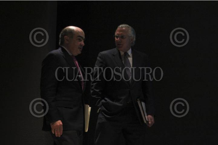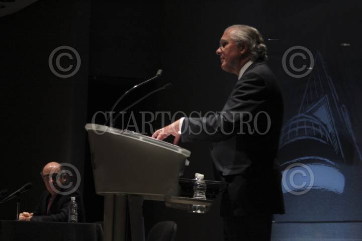 MÉXICO, D.F. 29FEBRERO2012.- Luis Tellez, Presidente de la Bolsa Mexicana de Valores junto a a Richard Fisher, Presidente de la reserva federal de Dallas durante la conferencia en la Bolsa Mexicana de Valores. FOTO: ENRIQUE ORDÓÑEZ /CUARTOSCUO.COM