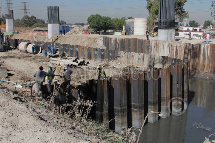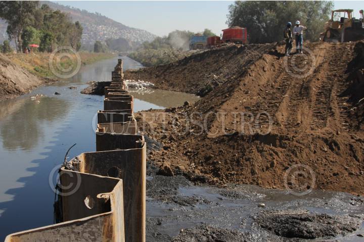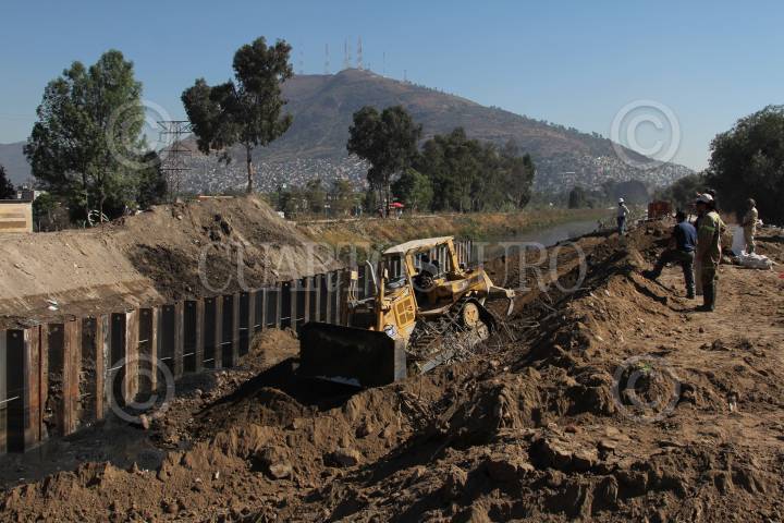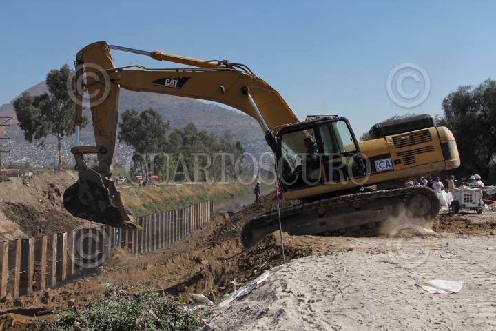 NEZAHUALCOYOTL, ESTADO DE MÉXICO, 03JULIO2011.- Trabajadores continuan con la reparacion de la fisura que ocasionó el desbordamiento del Rio de los Remedios. FOTO: ENRIQUE ORDÓÑEZ/CUARTOSCUR.COM