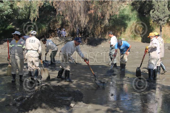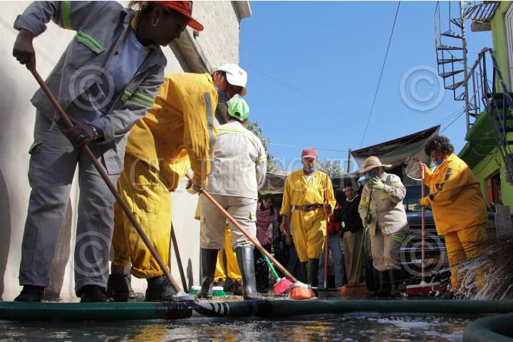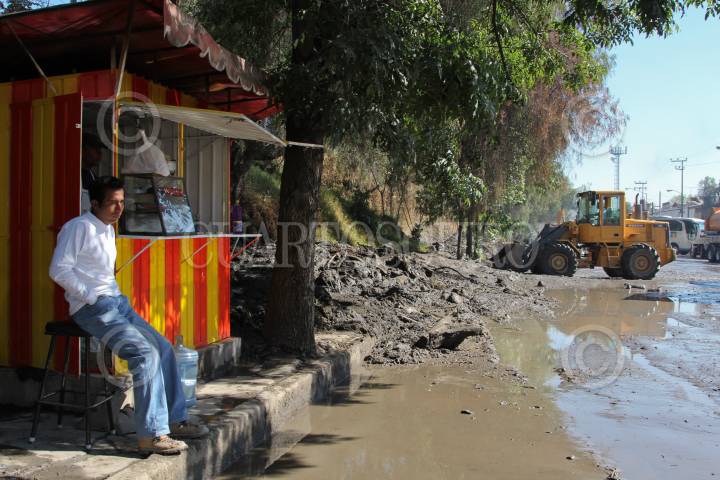 MÉXICO, D.F., 02FEBRERO2011.- Trabajadores continúan con la limpieza de las calles que fueron afectadas por la fisura que se provoco en el Rió de los Remedios a la altura de la colonia Industrial Vallejo. FOTO: ENRIQUE ORDÓÑEZ/CUARTOSCURO.COM