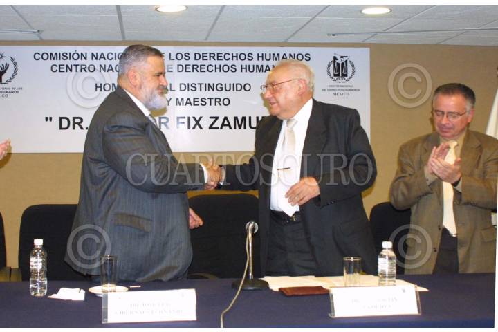 MEXICO, D.F. 03SEPTIEMBRE2004.- La Comisión Nacional de los Derechos Humanos rindió homenaje al doctor Héctor Fix Zamudio, miembro del Consejo Consultivo de este Organismo nacional, en ocasión del 80 aniversario de su natalicio. En la gráfica Jose Luis Soberanes, Héctor Fix Zamudio y Mariano Azuela, presidente de la Suprema Corte de Justicia de la Nación. FOTO:Iván Stephens/CUARTOSCURO.COM