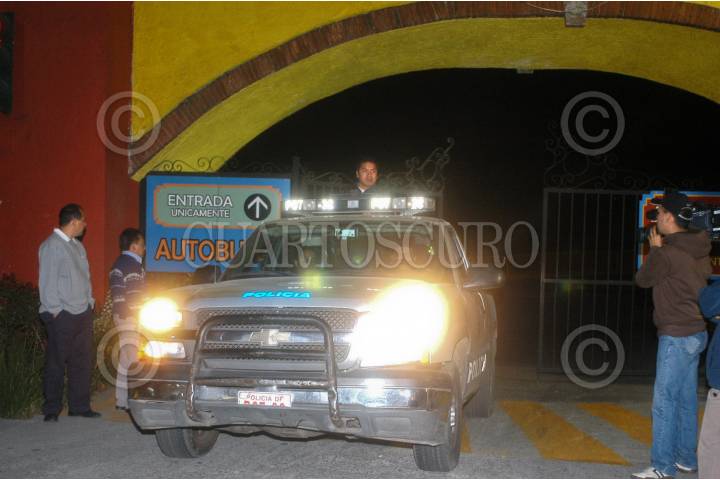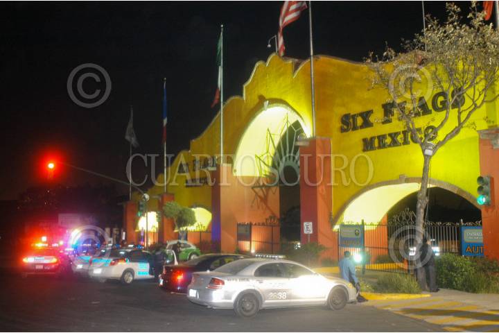 MÉXICO, D.F., 15FEBRERO2009.- Un comando Armado penetro a las instalaciones del parque de diversiones Six Flags ubicado en la carretera Picacho Ajusco, alrededor de la 01:30 de esta madrugada con la intención de saquear la Bóveda de valores, al lugar arribaron elementos de la policía Ministerial y del sector Fuente al lugar. El vocero de Six Flags, Roberto Báez dijo en conferencia que arribo un comando fuertemente armado ingresando al parque para el robo en la bóveda, sin que lograran su objetivo, motivo por lo que se activaron las alarmas de seguridad frustrando dicho atentado y sin que resultaran personas lesionadas o daños materiales. FOTO: JULIETA MORA/CUARTOSCURO.COM