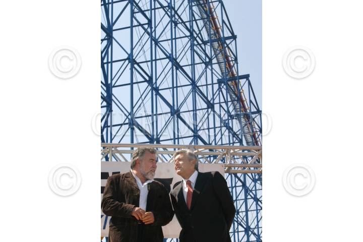 MEXICO, D.F. 18NOVIEMBRE2004.- Alejandro Encinas, secretario de gobierno y Andrés Manuel López Obrador, jefe de gobierno de la ciudad de México, durante la inauguración de una nueva atracción en el parque de diversones Six Flags. FOTO: Nelly Salas/CUARTOSCURO.COM