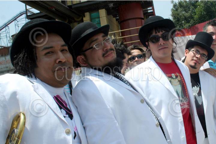 MÉXICO, D.F. 14JULIO2007.- El grupo musical La Tremenda Corte durante el festejo del aniversario del programa Hit M3 que se llevó a cabo en el parque de diversiones Six Flags. FOTO: PAOLA HIDALGO/CUARTOSCURO.COM