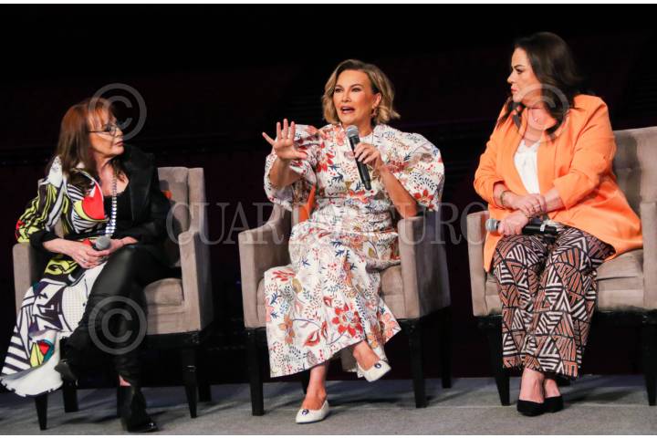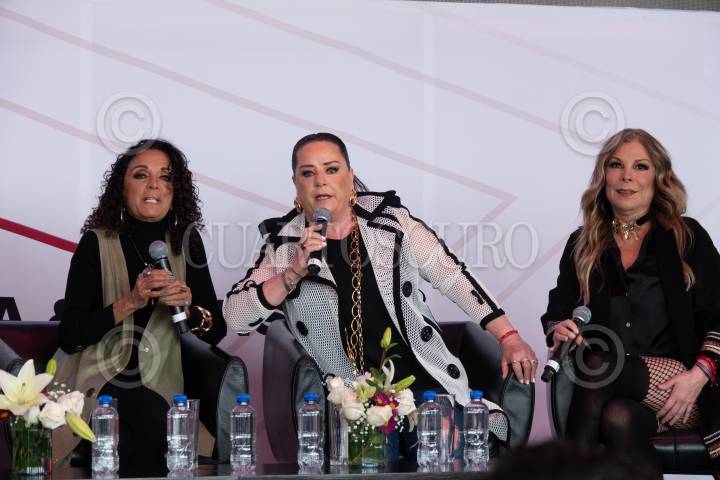 Fernanda Meade e Isabel Lascurain (Pandora) y Mimí (Flans) durante la conferencia de prensa previo a su presentación el próximo 23 de septiembre en la Arena Ciudad de México.