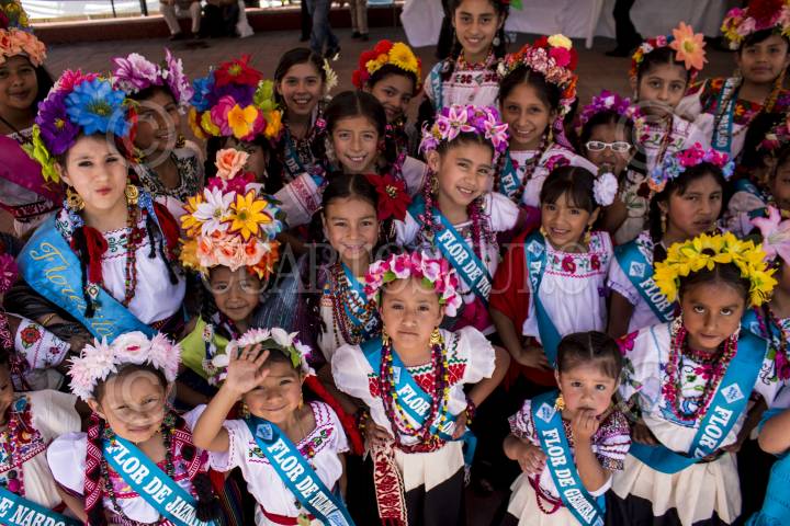 MEXICO, D.F., 06ABRIL2014.- Hoy se llevó a cabo la inauguración de la CCXXIX Fiesta de la Flor Más Bella del Ejido, en la delegación Xochimilco, en la cual participan jóvenes de distintas demarcaciones del Distrito Federal, quienes contienden por ser declaradas la flor que da nombre a esta tradicional fiesta. Los orígenes de esta fiesta se remontan 229 años atrás, debido a la intención de los campesinos de resaltar la belleza de las mujeres que habitaban los ejidos de la Ciudad de México, de los cuales aún sobreviven algunas zonas. En el marco de la celebración se presentaron distintas actividades y bailes tradicionales y folklóricos. En la imagen, las llamadas florecitas quienes esperan tener edad suficiente para contender también por ser declaradas las más bellas. FOTO: DAVID POLO /CUARTOSCURO.COM