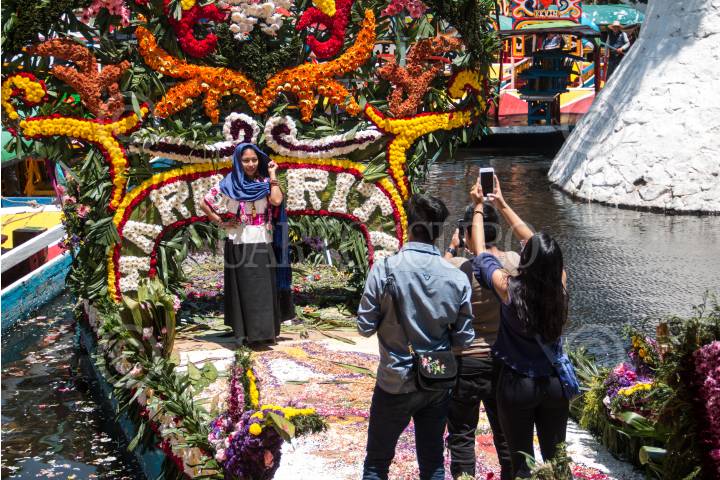CIUDAD DE MÉXICO, 12ABRIL2019.- Horas antes a la premiación de la Flor más Bella del Ejido 2019, las participantes se reunieron en el embarcadero de Xochimilco para tomarse fotografías con los turistas y transeúntes. FOTO: ANDREA MURCIA /CUARTOSCURO.COM