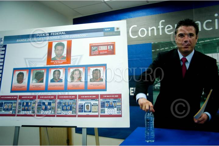 MÉXICO D.F., 12MAYO2009.- Luis Cárdenas Palomino, Coordinador de Inteligencia para la Prevención de la PFP, dio a conocer la detención de Ulises Zenil Villegas, detenido en un operativo en Iztapalapa, presunto integrante de la banda de secuestradores Los Palafox, vinculada a la estructura criminal de Los Zodiacos, a la que pertenecía Florence Cassez de nacionalidad francesa. FOTO: GUILLERMO PEREA/CUARTOSCURO.COM