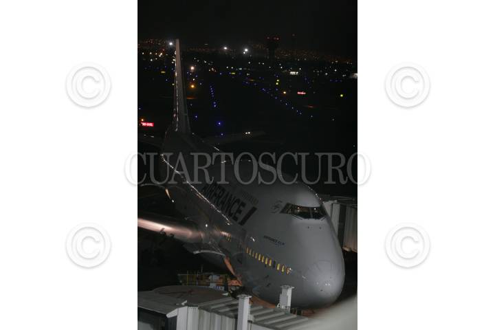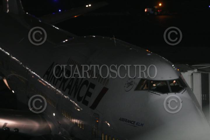 MÉXICO, D.F. 23ENERO2013.-Avión de la empresa AIR FRANCE en el que partió la recién liberada Florence Cassez, luego de ocultarse de los medios de comunicación y escoltada por patrullas de la Policia Federal en la pista del Aereopuerto. FOTO: JUAN PABLO ZAMORA /CUARTOSCURO.COM