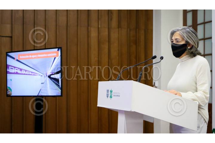 Florencia Serranía, encabezó la conferencia de prensa de movilidad, sobre los avances en los trabajos del Metro.