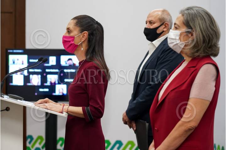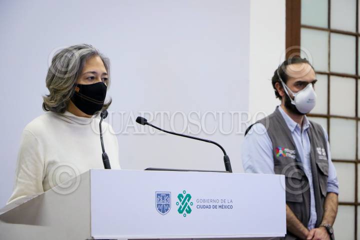Florencia Serrania en conferencia de prensa para dar detalles de los avances para poner en operación las líneas 1, 2 y 3 del metro.