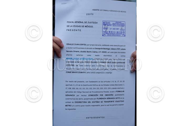 Integrantes del Sindicato del Metro, presentaron una denuncia en contra de la directora Florencia Serranía.