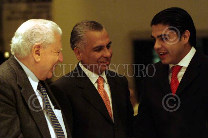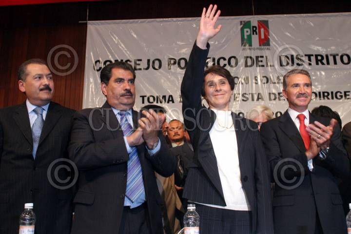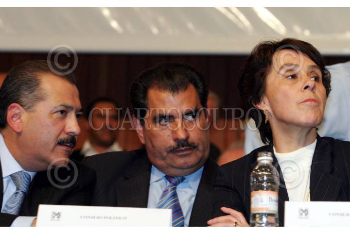 Mèxico, D.F., 11ENERO2005.- Manlio Fabio Beltrones, presidente de la Cámara Diputados, Florentino Castro López, integrante del comite político del PRI y María de los Angeles Moreno, lider del PRIDF, durante la toma de protesta de la dirigencia del PRI DF, en la sede nacional del revolucionario institucional. FOTO: Moisés Pablo/CUARTOSCURO.COM