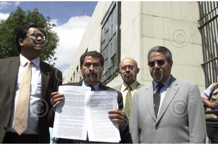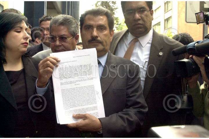 México, D. F. 02 Abril 2004.- Florentino Castro, presidente del PRI del D. F. y Claudia Esqueda presentaron una denuncia en la fiscalia contra delitos de servidores públicos en la Procuraduria de Justicia del D. F. por los acontecimientos a las puertas de la Asamblea Legislativa del D. F. el martes pasado. FOTO: Jose Rojas/CUARTOSCURO.COM