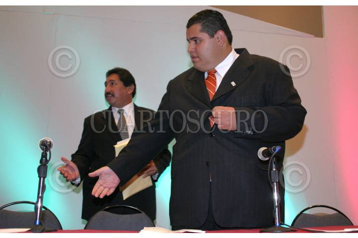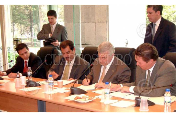 MEXDF30ABRIL2004.- En la cámara de diputados se firmó el Convenio de Coordinación del Sistema Nacional de Gestión y Atención a la Demanda, con el Comité Directivo del Partido Revolucionario Institucional en el Distrito Federal Florentino Castro diregente local y Emilio Chauyffet coordinador fracción priísta. FOTO: Pedro Argumedo/CUARTOSCURO.COM