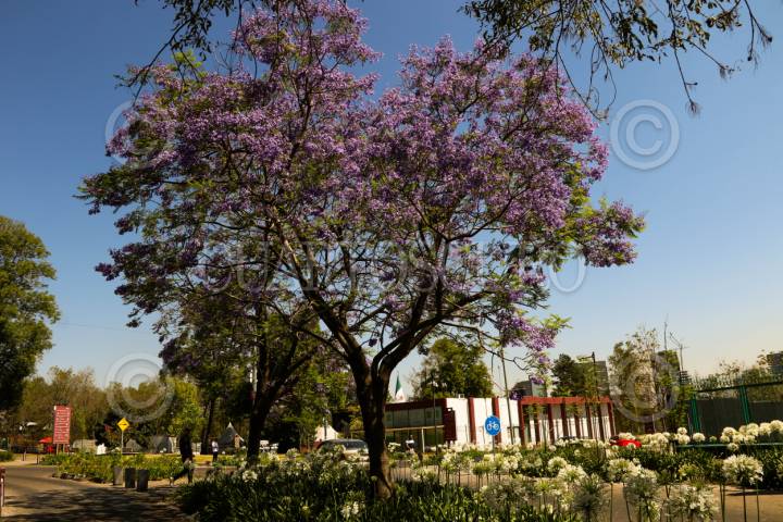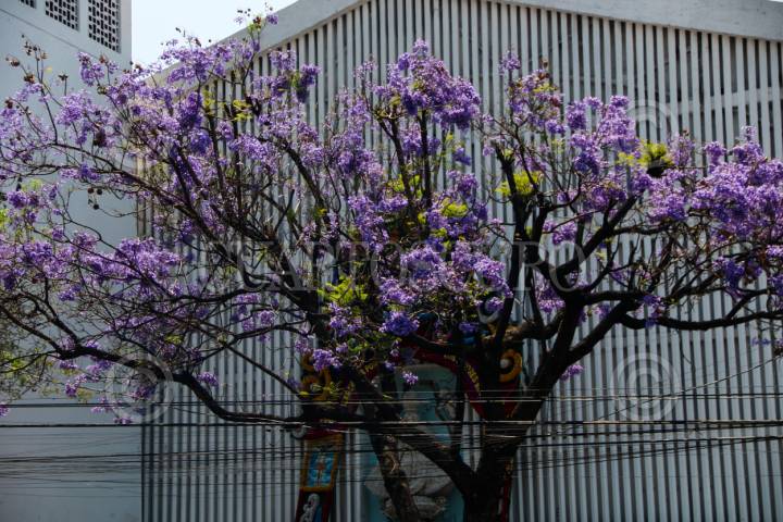 CIUDAD DE MÉXICO. 02ABRIL2025.- Jacaranda en la avenida Eje 3 Sur, en la Colonia Buenos Aires, frente a la iglesia de la Virgen de San Juan de los Lagos; de la alcaldía Cuauhtémoc. FOTO: VICTORIA VALTIERRA/CUARTOSCURO.COM