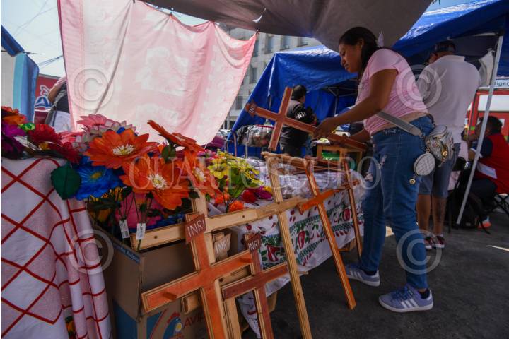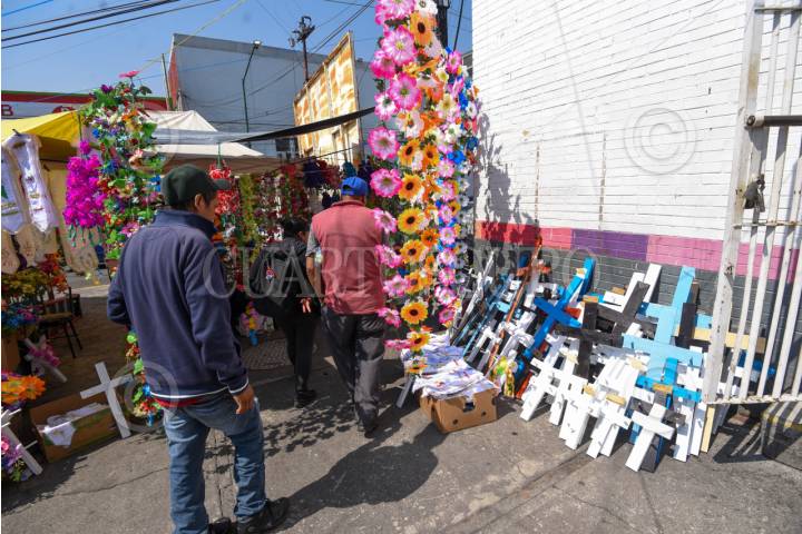 TOLUCA, ESTADO DE MÉXICO, 02MAYO2025.- Como parte de la celebración del Día de la Santa Cruz, comerciantes del Mercado 16 de Septiembre ofrecen cruces de madera, mantos y flores naturales, papel y plástico para poder continuar con esta tradición, a pesar de que los costos se incrementaron en un 10 por ciento. Esperan tener buenas ventas; los precios van desde los 65 pesos en adelante, todo dependiendo del presupuesto de cada cliente. FOTO: CRISANTA ESPINOSA AGUILAR /CUARTOSCURO.COM