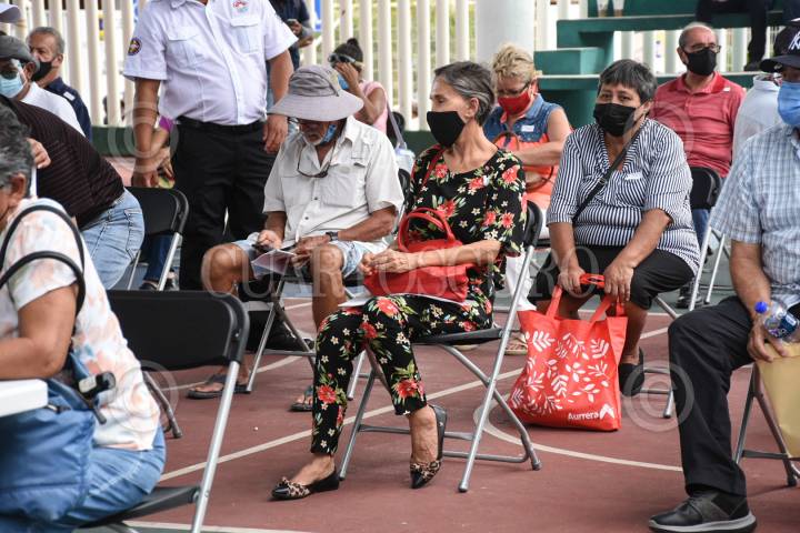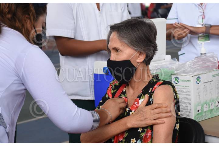 Florinda Meza recibió su vacuna contra la Covid.-19 en Cancún, Quintana Roo.