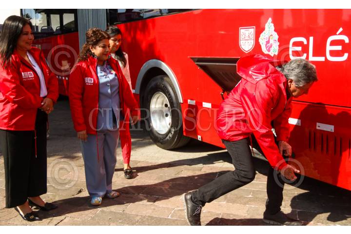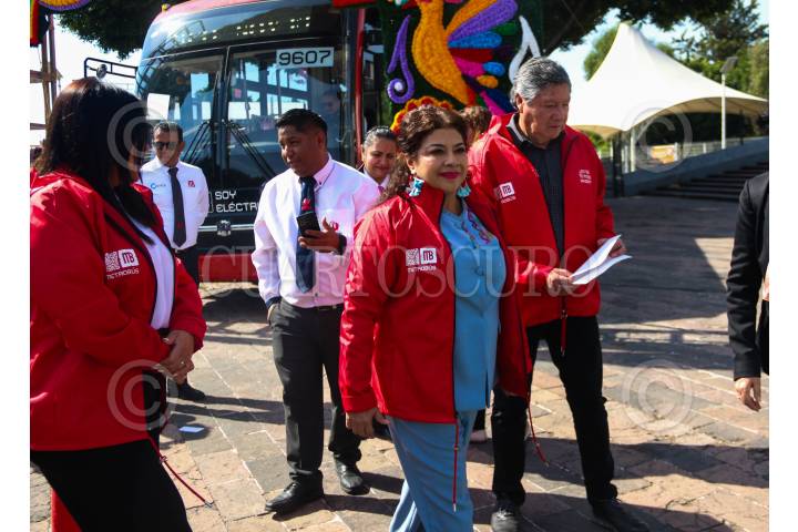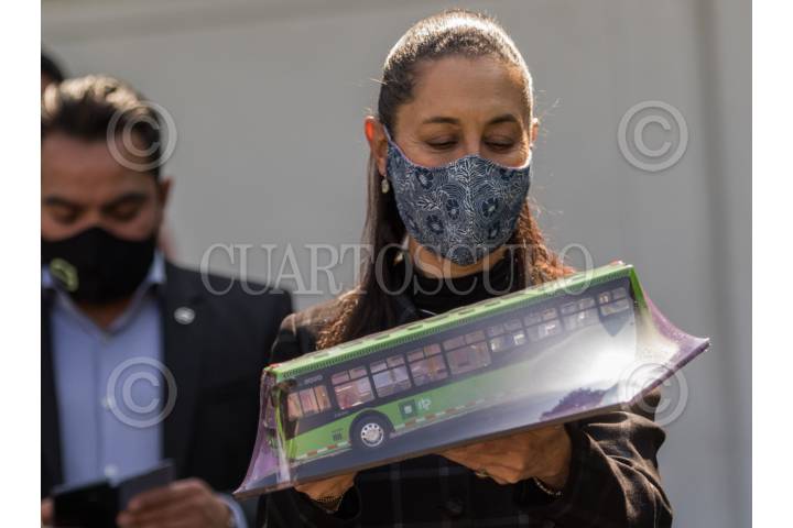 CIUDAD DE MÉXICO. 20ENERO2025.- La jefa del Gobierno de la Ciudad, Clara Brugada Molina, dió el arranque a una nueva flotilla de Metrobus; está mañana en la explanada del Palacio de los deportes. La acompañaron, El titular de Movilidad Héctor García Nieto, la alcaldesa Lourdes Paz y la directora del Metrobus Rosario Castro. FORO: VICTORIA VALTIERRA/CUARTOSCURO.COM