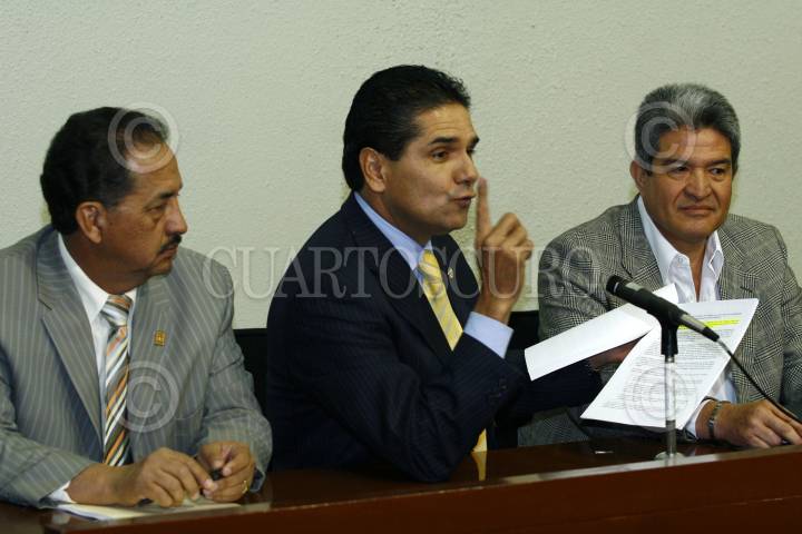 MÉXICO, D.F. 19DICIEMBRE2007.- El senador Silvano Aureoles y el diputado Fausto Fluvio y el porcicultor Roberto Espinoza ofrecieron una confrencia acerca de las movilizaciones contra de la entrada en vigor del capítulo agropecuario del TLCAN. FOTO: PAOLA HIDALGO/CUARTSCURO.COM
