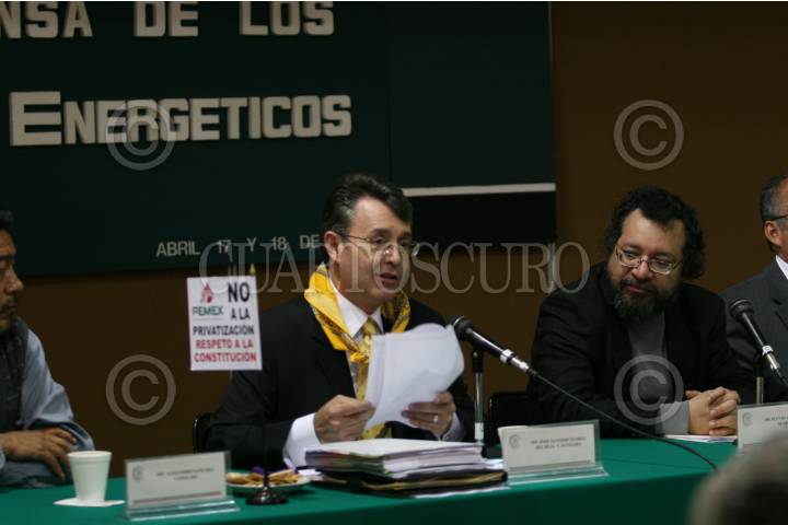 MÉXICO D.F. 18ABRIL2008.-Se realizó esta mañana el foro "En Defensa de los Recursos Energéticos" esto en las instalaciones de la Cámara de Diputados.En la imagen el diputado Alfonso Zuarez del Real (PRD) y el Doctor Fluvio Cesar Ruiz. FOTO: GUILLERMO PEREA /CUARTOSCURO.COM