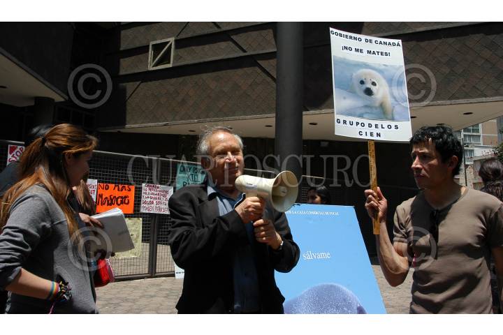 MEXICO D.F. 06ABRIL2006.- El escritor Homero Aridjis y decenas de personas realizaron una manifestación contra la matanza de focas frente a la embajada de Canada. FOTO: Germán Romero/CUARTOSCURO.COM