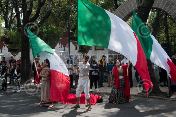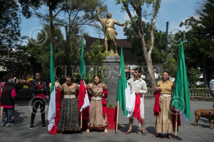 CIUDAD DE MÉXICO, 19AGOSTO2018.- A las afueras de la Parroquia de los Santos Apóstoles Felipe y Santiago, se llevo a cabo la representación de la última batalla de la Independencia en Azacapotzalco. El evento reunió a vecinos de la delegación. El 19 de agosto de 1821 se libró el combate final entre los ejércitos realista y Trigarante en la calzada. FOTO: ANDREA MURCIA /CUARTOSCURO.COM