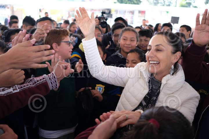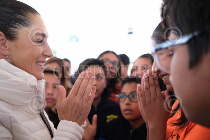 Integrantes del Magno Coro y alumnos de la Secundaria Federal 327 convivieron con Claudia Sheinbaum, jefa de Gobierno, al finalizar la jornada de lectura "Lunes por la Educación".