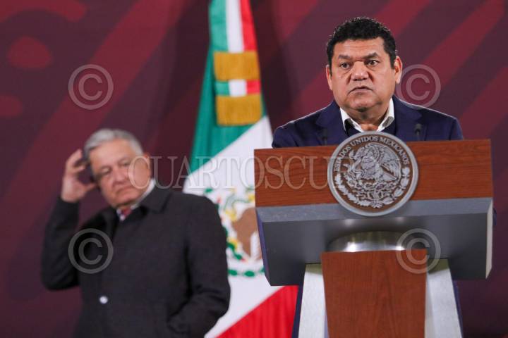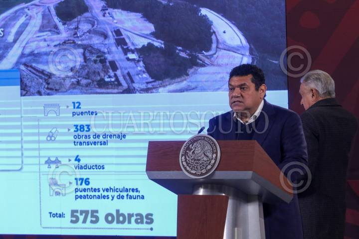 Javier May Rodríguez, director general del Fondo Nacional de Fomento al Turismo (Fonatur), durante la mañanera en la que se dieron detalles del Tramo 4 del Tren Maya.