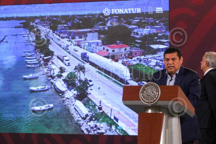 Javier May Rodríguez, director general del Fondo Nacional de Fomento al Turismo (Fonatur), informa de los avances del Tramo 5, 6 y 7 del Tren Maya.