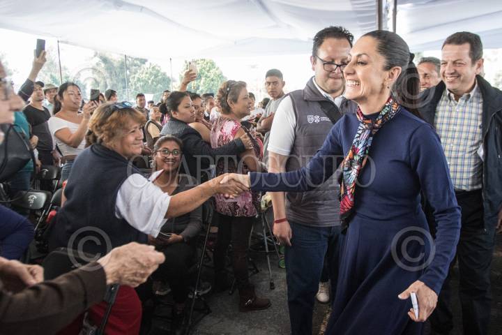 CIUDAD DE MÉXICO, 26SEPTIEMBRE2019.- Claudia Sheinbaum, mandataria local, acompañada del alcalde de Iztacalco, Armando Quintero y del director de Fondeso, Fadlala Akabani Hneide, entrego créditos a la palabra en la explanada del Palacio de los Deportes. FOTO: VICTORIA VALTIERRA /CUARTOSCURO.COM