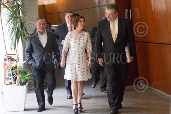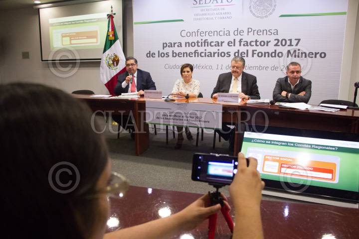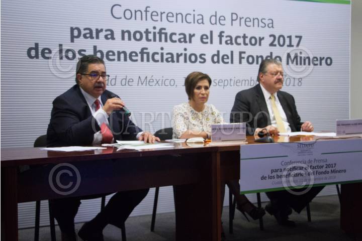 CIUDAD DE MÉXICO 11SEPTIEMBRE2018.- Rosario Robles Berlanga, titular de la Sedatu, acompañada de Fernando Alaniz, en la conferencia de prensa para notificar el factor 2017 de los beneficios del Fondo Minero. FOTO: VICTORIA VALTIERRA /CUARTOSCURO.COM
