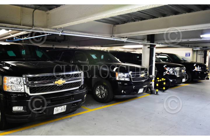 CIUDAD DE MÉXICO, 21FEBRERO2019.- Los vehículos blindados de la Presidencia de la República que serán subastados este fin de semana por el Servicio de Administración y Enajenación de Bienes (SAE), comenzaron a llegar a las instalaciones de la Base Aérea Militar número 1 de la Fuerza Aérea Mexicana (FAM) en el municipio de Zumpango. El Gobierno de México realizó los avalúos de cada uno de los vehículos para tazar el precio de salida; buscan obtener 100 mdp, que serán destinados para la creación de la Guardia Nacional. Este sábado 23 y domingo 24 de febrero se realizará una subasta, a partir de las 10:00 horas, de 171 camionetas Captiva, Suburban y Taho, algunas de ellas con blindaje o semiblindaje. También se ofertarán siete tractocamiones Kenworth y Volvo; 23 camionetas Pickup; nueve automóviles compactos; 30 motocicletas de las marcas BMW y Harley Davison. En la subasta serán ofertados un auto BMW y un Audio, ambos blindados, de los cuales, el segundo tuvo un costo en su momento de 6 millones 335 mil pesos, pero su precio de salida en la subasta será de un millón 991 mil pesos. FOTO: GOBIERNO DE LA REPÚBLICA/ARCHIVO/CUARTOSCURO.COM