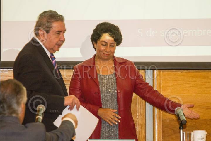 CIUDAD DE MÉXICO, 05SEPTIEMBRE2017.- Patricia Chemor Ruiz, secretaria del Consejo Nacional de Población, y Humberto Roque Viallanueva, subsecretario de Gobernación, durante la presentación del libro "Situación demográfica de México 2016". FOTO: ISAAC ESQUIVEL /CUARTOSCURO.COM