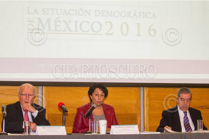 CIUDAD DE MÉXICO, 05SEPTIEMBRE2017.- Humberto Roque Viallanueva, subsecretario de Gobernación, y Patricia Chemor Ruiz, secretaria del Consejo Nacional de Población, durante la presentación del libro "Situación demográfica de México 2016". FOTO: ISAAC ESQUIVEL /CUARTOSCURO.COM